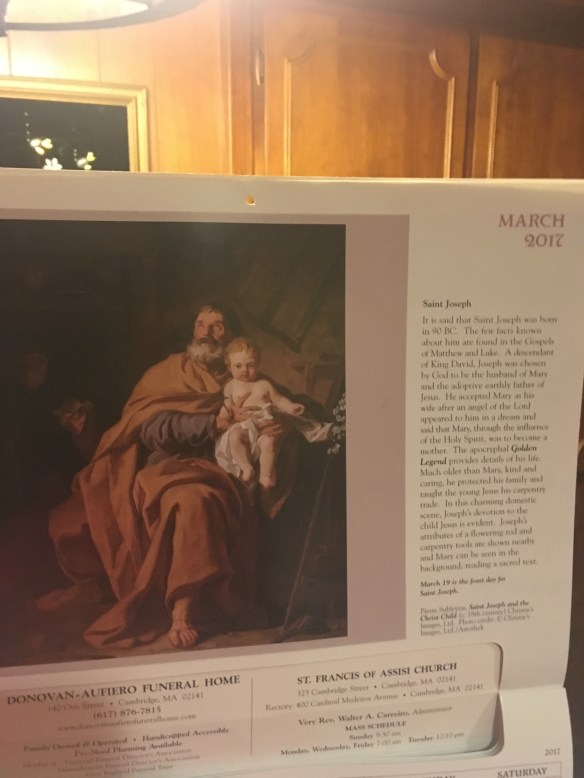 I took a look at a calendar in the kitchen when I was feeling a bit anxious. This calendar had a different saint for each month. I flip to March (my birth month), and what do ya know? Here he is.